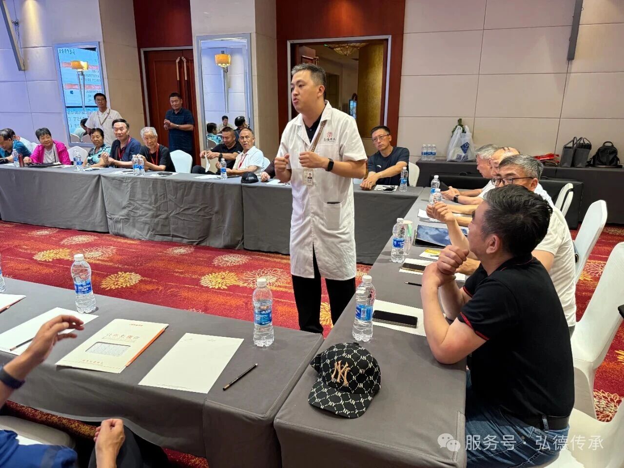 在现场,弘德中医学堂曹先锋老师为各位首长科普“三高”疾病和讲解常用养生保健穴位的定位功效,期间更是有首长主动担任人体模特以方便教学。