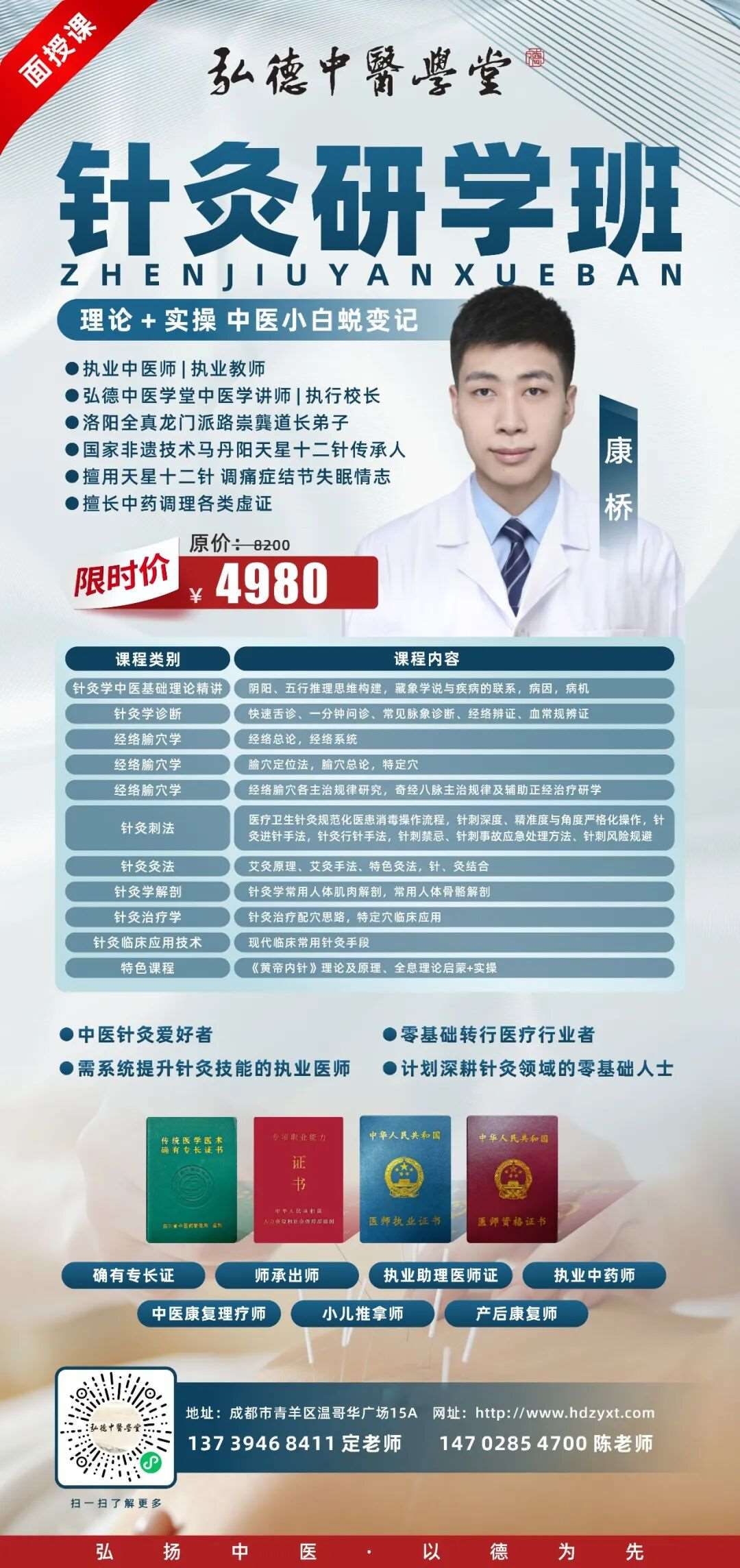 等一站式中医课程,汇聚院校老师、名老中医、道医等优质师资,配备完善教学设施与优越学习环境,结业后更有就业推荐,全方位培养专业中医人才。